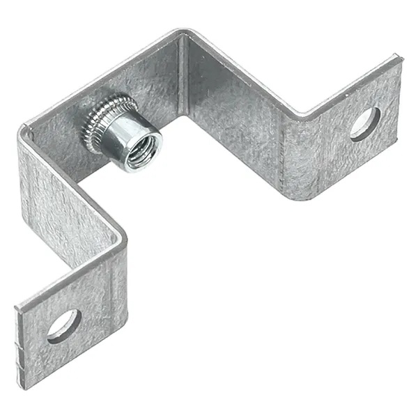 Конструкция кронштейна включает центральное резьбовое отверстие под метиз стандарта М6, обеспечивая надёжное крепление и устойчивость к вибрациям. Изделие выполнено из прочного материала, устойчивого к коррозии и механическим воздействиям, что гарантирует долгий срок службы и надёжность в эксплуатации.