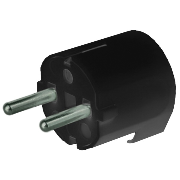 Вилка кабельная, бытовая с боковым вводом кабеля. Черная. IP20 16А 2P+E 230В