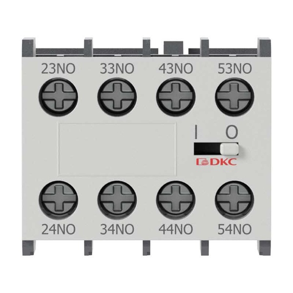 Модуль дополнительных контактов фронтального монтажа для контакторов серии DMC представляет собой комплект из 1 нормально открытого (1НО) и 1 нормально закрытого (1НЗ) контакта. Этот модуль предназначен для расширения функциональности контакторов, позволяя дополнительно контролировать состояние основного контакта или управлять вспомогательными цепями.