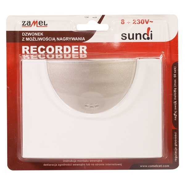 Дверной звонок Zamel Рекордер — функциональное решение для дома, квартиры или офиса, совмещающее удобный дверной вызов с возможностью записи и регулятором силы звука. Подходит для ситуаций, когда важно не пропустить посетителя и при необходимости использовать записанное сообщение или звуковой фрагмент.