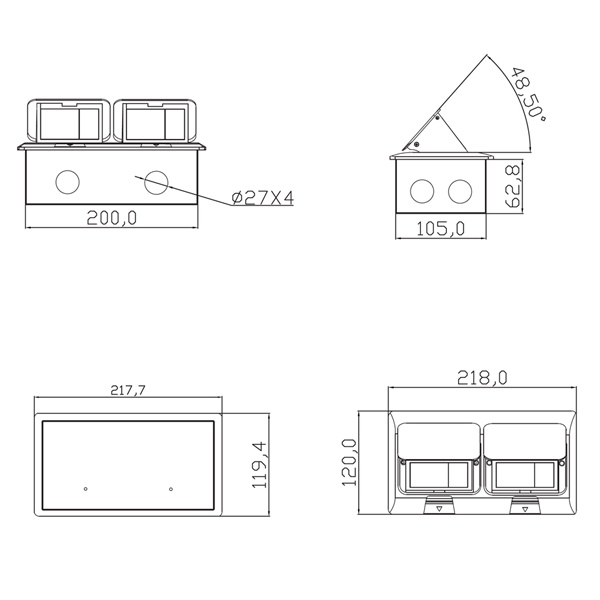 Установка блоков в бетонный пол и в фальш-пол предоставляет возможность монтировать изделия как в любой тип полов, так и непосредственно в мебель. Применим к электроустановочным изделиям стандарта mosaic 45х45 (серии Mosaic, K45, Modul45, Altira, W45 и других производителей). Данные решения так же возможно использовать в свободных открытых офисных площадках и переговорных комнатах.