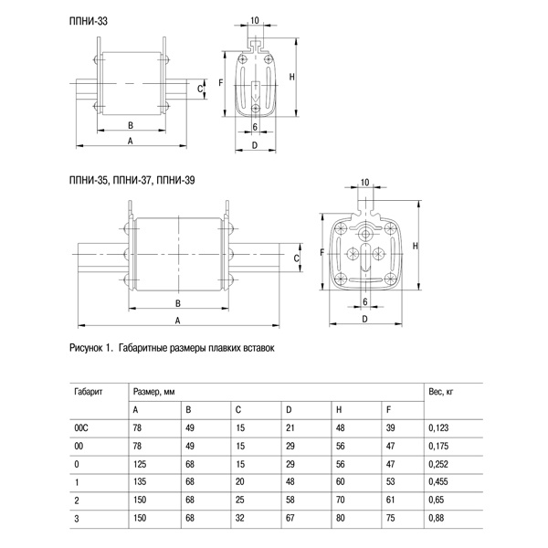 Предохранители плавкие ППНИ cоответствуют требованиям ГОСТ Р 50339.0 , 50339.2.