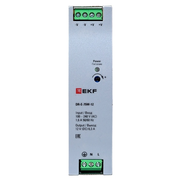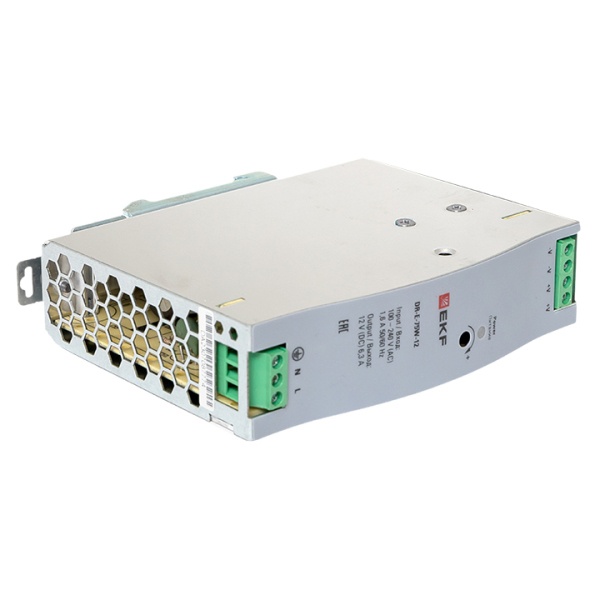 Блок понижающего преобразователя напряжения 230 Вольт на 12 Вольт мощностью 75 Вт на дин рейку DR-E DR-E-75W-12