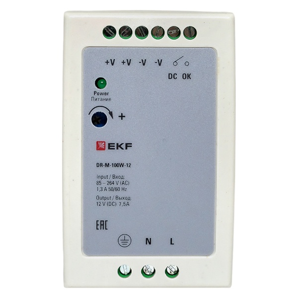 Блок понижающего преобразователя напряжения 230 Вольт на 12 Вольт мощностью 100 Вт на дин рейку DR-M DR-M-100W-12