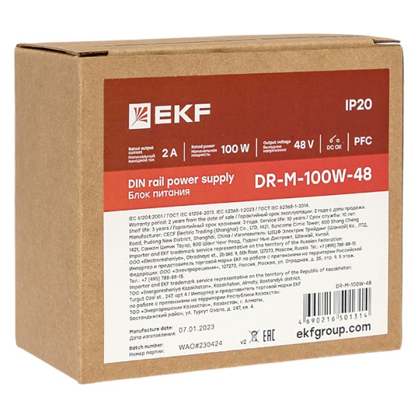 Блок понижающего преобразователя напряжения 230 Вольт на 48 Вольт мощностью 100 Вт на дин рейку DR-M DR-M-100W-48