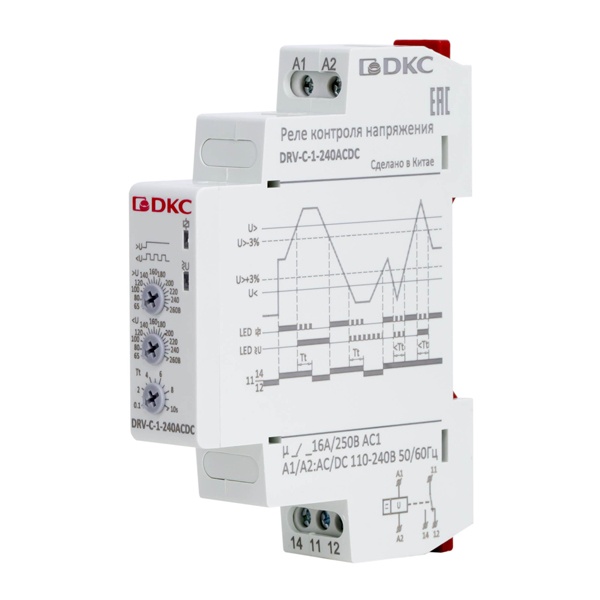 Одномодульное реле контроля однофазного электрического напряжения DRV 65-260 Вольт DRV-C-1-240ACDC