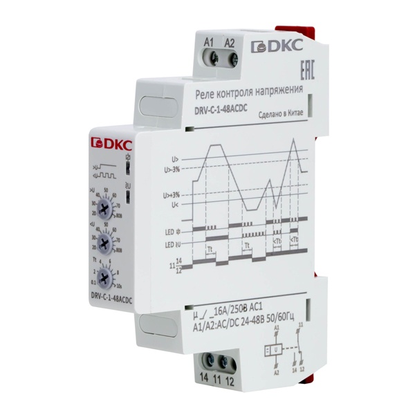 Реле контроля напряжения DRV предназначены для непрерывного контроля уровня напряжения в однофазной электрической сети. Устройства автоматически формируют управляющий сигнал на отключение нагрузки при выходе напряжения за заданные пределы, предотвращая тем самым повреждение оборудования. После нормализации параметров сети реле может автоматически восстановить питание нагрузки с учетом заданной задержки, обеспечивая защиту от кратковременных перепадов напряжения.
