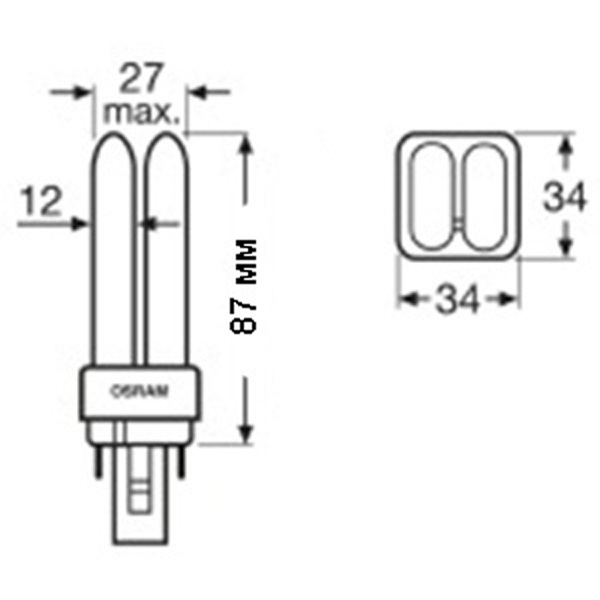 Компактная люминесцентная лампа превосходно подходит для миниатюрных светильников и потолочных светильников с малой глубиной установки. Лампа OSRAM DULUX D имеет такую же длину, как и лампа OSRAM DULUX S, и при этом вдвое больший световой поток. Эти лампы под патрон G24d потребляют всего 1/4 – 1/5 электроэнергии ламп накаливания аналогичной яркости. ККЛ Osram дают приятный теплый свет, а также отличаются превосходной цветопередачей.