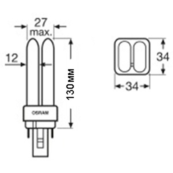 Компактная люминесцентная лампа превосходно подходит для миниатюрных светильников и потолочных светильников с малой глубиной установки. Лампа OSRAM DULUX D имеет такую же длину, как и лампа OSRAM DULUX S, и при этом вдвое больший световой поток. Эти лампы под патрон G24d потребляют всего 1/4 – 1/5 электроэнергии ламп накаливания аналогичной яркости. ККЛ Osram дают приятный теплый свет, а также отличаются превосходной цветопередачей.