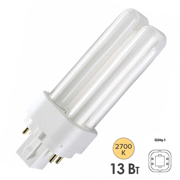 Компактная энергосберегающая лампа КЛЛ мощностью 13 Вт с цоколем G24q-1 для электронных ПРА (ЭПРА) 4050300012131