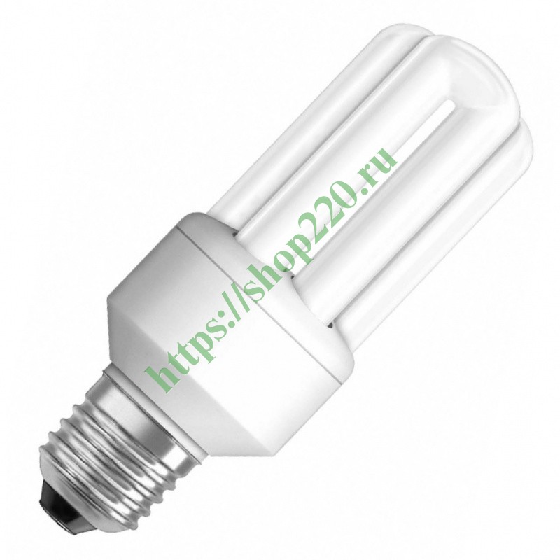 Энергосберегающая компактная люминесцентная лампа Osram мощностью 11 Ватт с цоколем E27 теплого света. Dulux INT LL 11W/825 E27