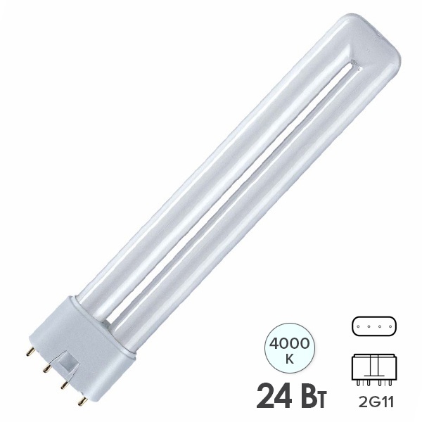 Компактная энергосберегающая лампа КЛЛ мощностью 24 Вт с цоколем 2G11 для ЭПРА или ЭмПРА 4050300018584