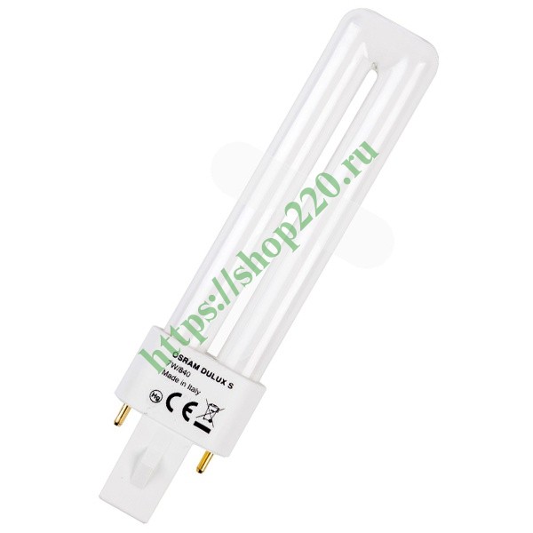 Энергосберегающая лампа Osram Dulux под патрон G23 белого света, она же и компактная люминесцентная лампа.