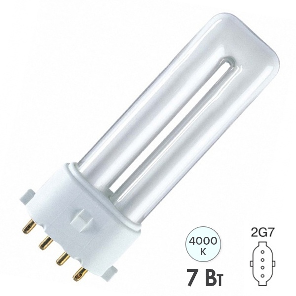 Компактная энергосберегающая лампа КЛЛ мощностью 7 Вт с цоколем 2G7 для светильников с ЭПРА 4050300020167