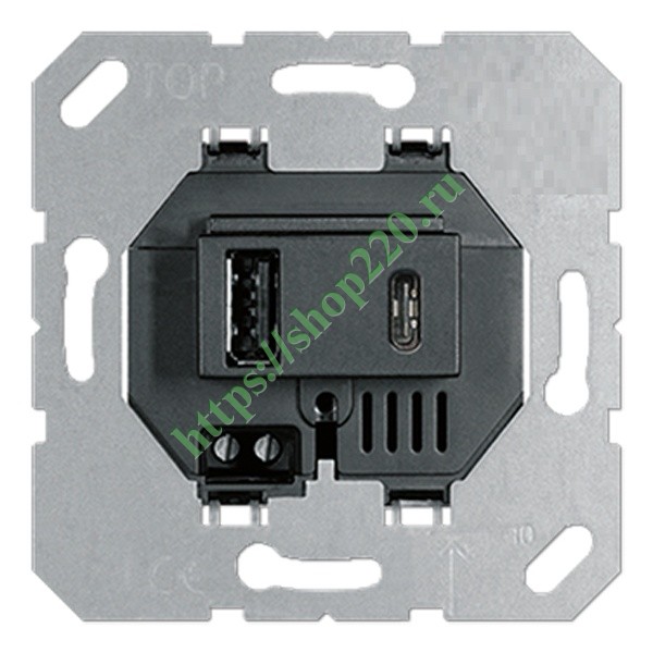 Универсальный механизм зарядного устройства с двумя разъемами USB type A и type C, 3100мА, черного цвета. DUSB3100ANС