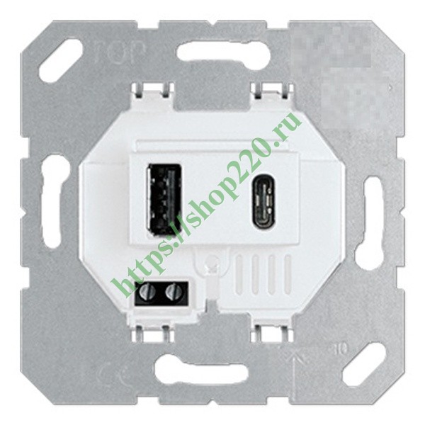 Универсальный механизм зарядного устройства с двумя разъемами USB type A и type C, 3100мА, белого цвета. DUSB3100WС