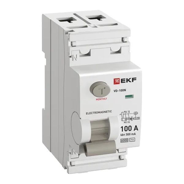 E1026M100300 УЗО EKF PROxima ВД-100N 2П 100А 300мА тип AC 6кА (электромеханическое) (ВДТ) фото 1