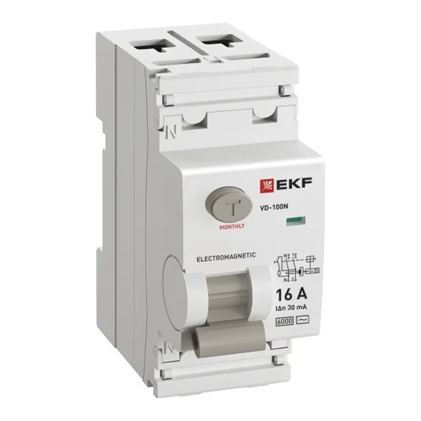 • УЗО EKF PROxima ВД-100N 2П 25А 30мА тип AC 6кА (электромеханическое) (ВДТ)