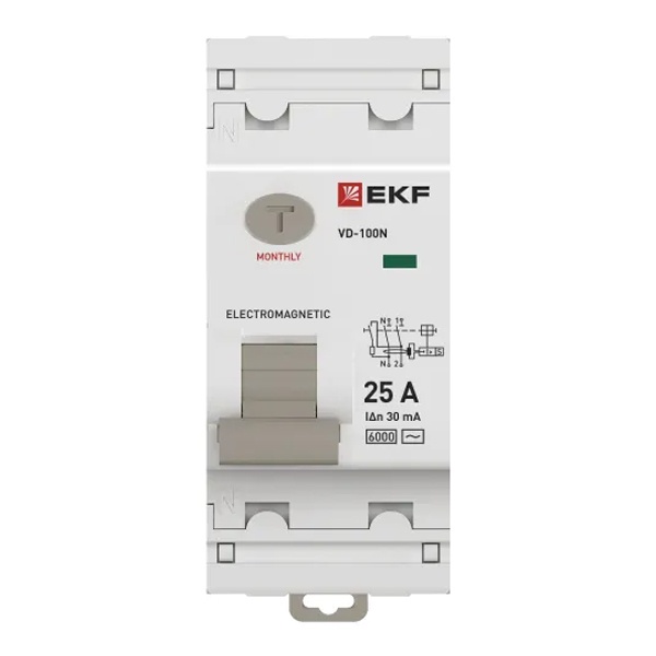 УЗО EKF PROxima ВД-100N 2П 25А 30мА тип AC 6кА (электромеханическое) (ВДТ) E1026M2530