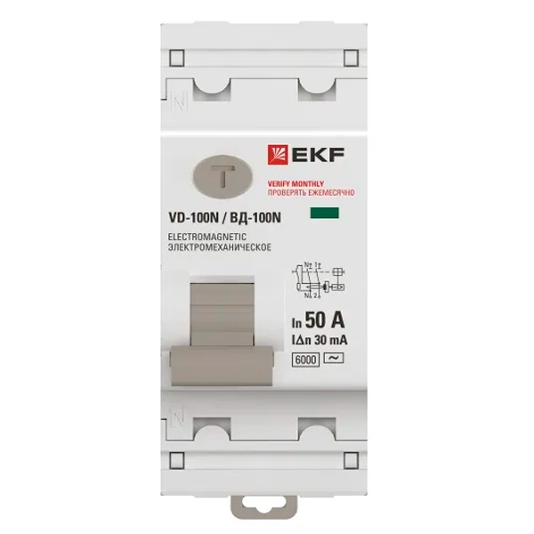 УЗО EKF PROxima ВД-100N 2П 50А 30мА тип AC 6кА (электромеханическое) (ВДТ) E1026M5030