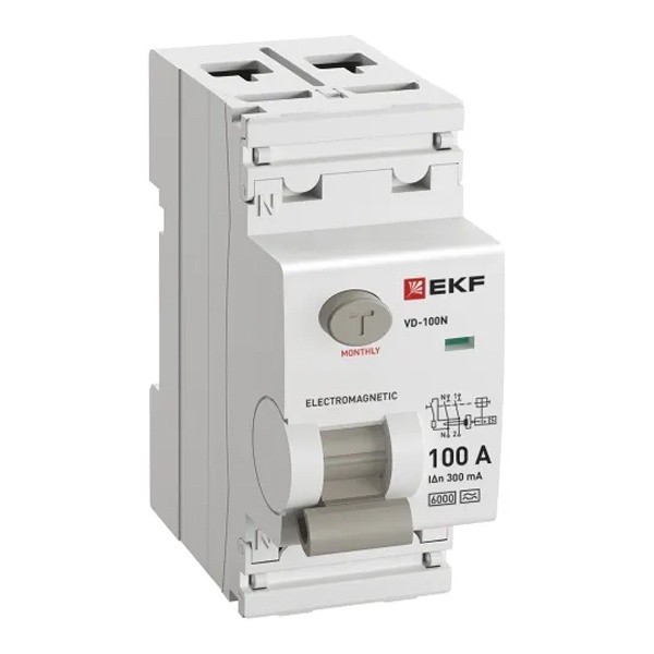 E1026MA100300 УЗО EKF PROxima ВД-100N 2П 100А 300мА тип A 6кА (электромеханическое) (ВДТ)