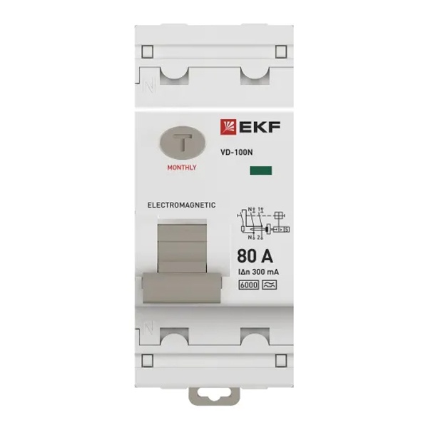 УЗО EKF PROxima ВД-100N 2П 80А 300мА тип A 6кА (электромеханическое) (ВДТ) E1026MA80300
