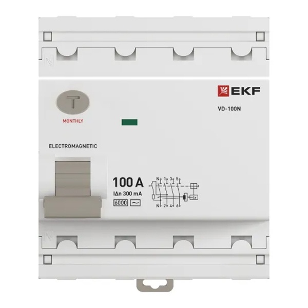 E1046M100300 УЗО EKF PROxima ВД-100N 4П 100А 300мА тип AC 6кА (электромеханическое) (ВДТ) фото 1