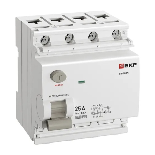 • УЗО EKF PROxima ВД-100N 4П 25А 10мА тип A 6кА (электромеханическое) (ВДТ)