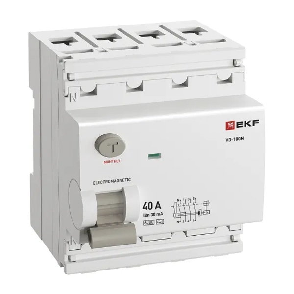 • УЗО EKF PROxima ВД-100N 4П 40А 30мА тип A 6кА (электромеханическое) (ВДТ)