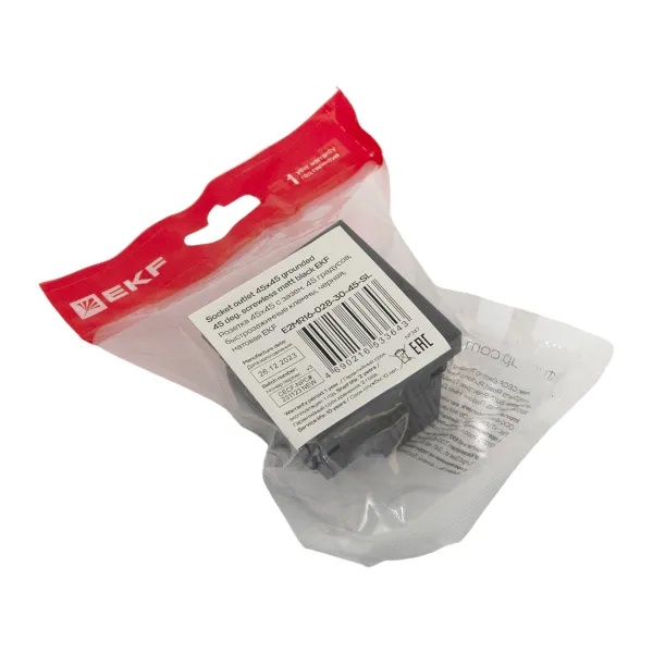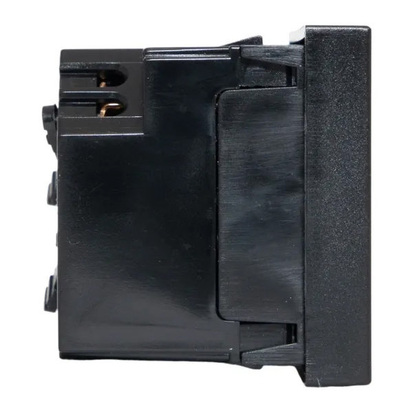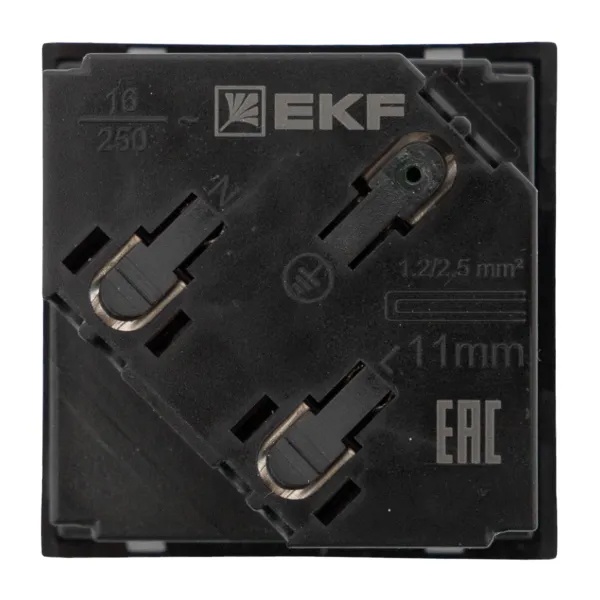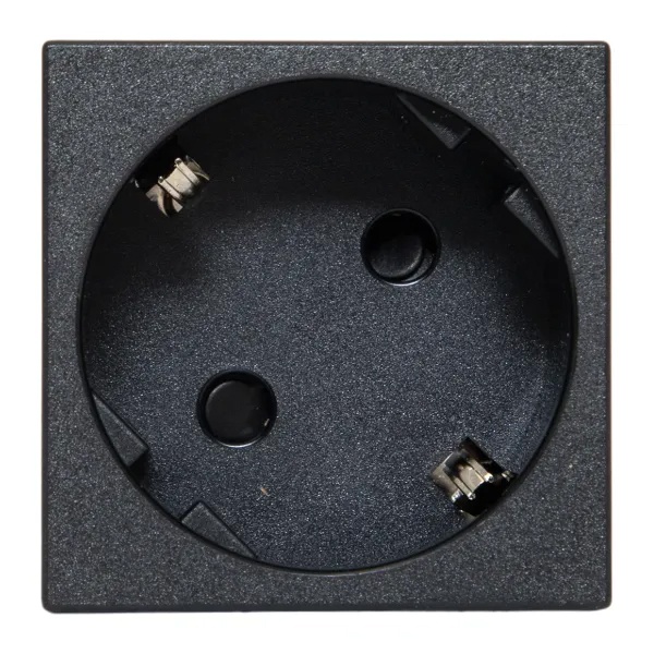 Электрическая розетка с заземлением и защитными шторками черная двухмодульная C-Line угловое подключение пружинный зажим E2MR16-028-30-45-SL