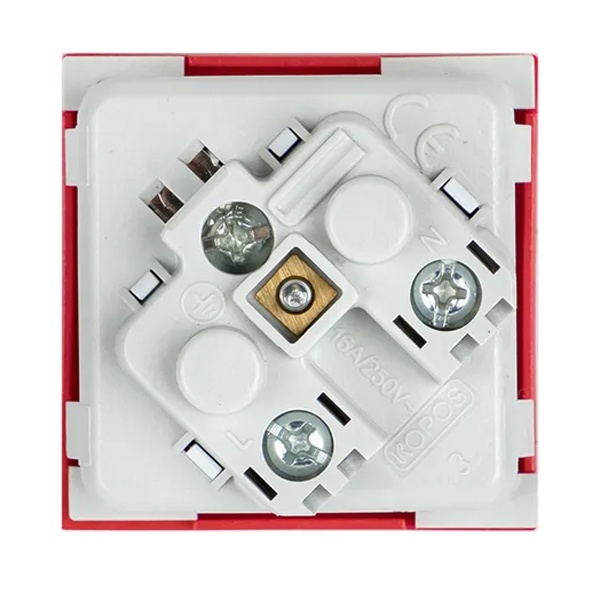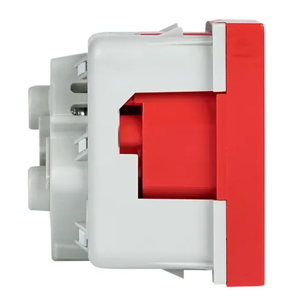 Электрическая розетка с заземлением и защитными шторками красная двухмодульная C-Line угловое подключение E6MR16-028-70-45
