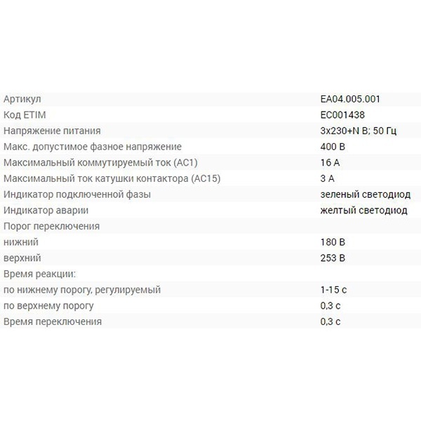 | Максимальный ток катушки контактора (AC15) | 3 А |