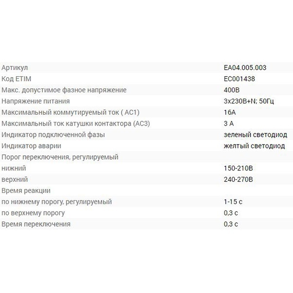 - Макс. допустимое фазное напряжение: 400В