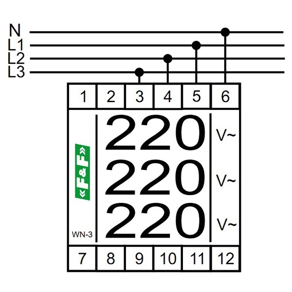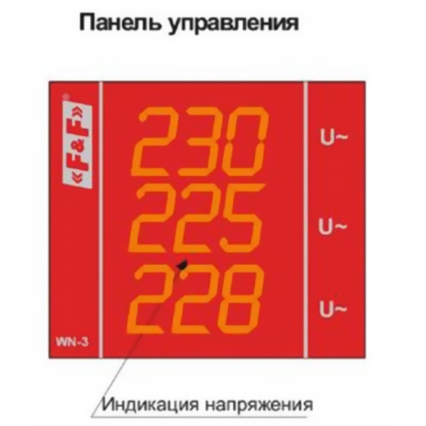 Указатель напряжения WN-3 (трехфазный; 20-450В отображает фазные или линейные напряжения; цифровая индикация; память миним. и макс. значения напряжения 3 мод. монтаж на DIN-рейке) F&F EA04.007.007