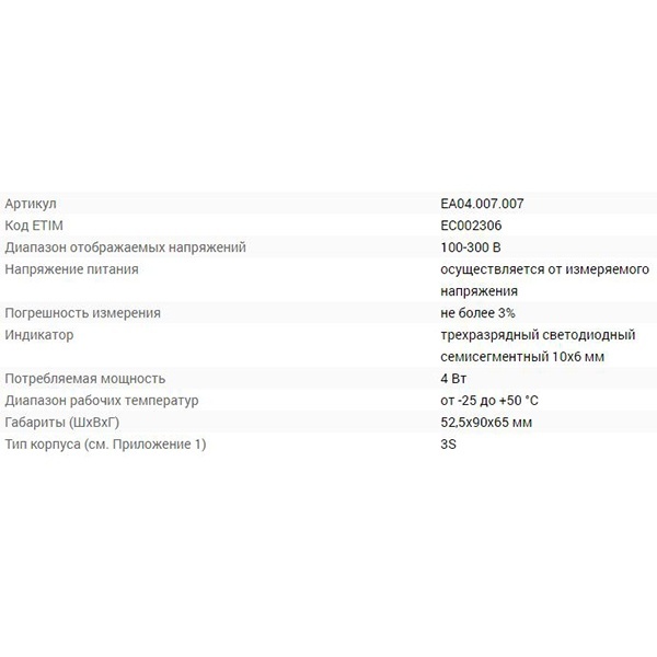 | Напряжение питания | осуществляется от измеряемого напряжения |