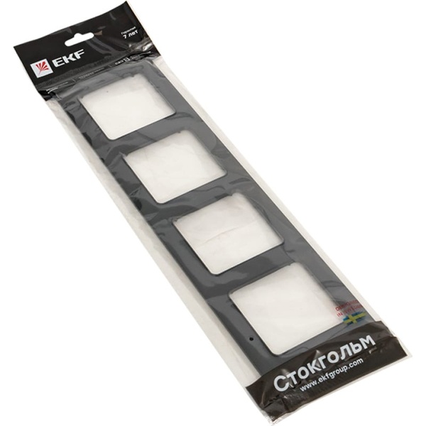 Четырехпостовое обрамление из пластика прямоугольной формы, для электроустановочных механизмов ЕКФ, коллекция Стокгольм, черного цвета EAM-G-303-30