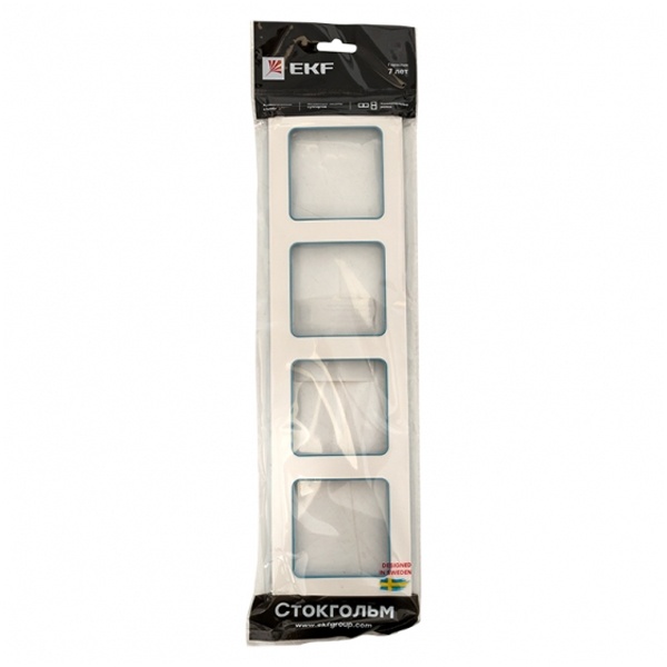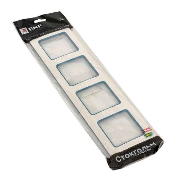 • Рамка 4-местная EKF Стокгольм белый с линией цвета синий