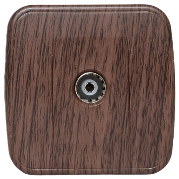 Внешняя под тёмное дерево ТВ-антенная розетка одинарная ЕКФ под телевизор открытой установки на стену EGA00-027-40