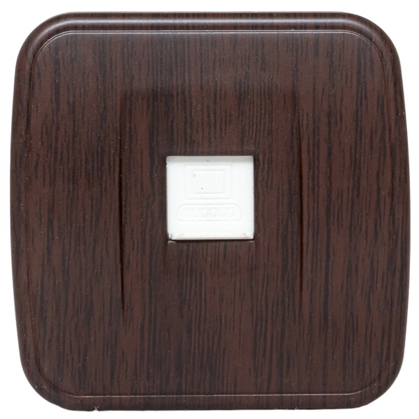 Внешняя сетевая под тёмное дерево розетка RJ-45 UTP одинарная ЕКФ для интернета открытой установки на стену EGK01-035-40
