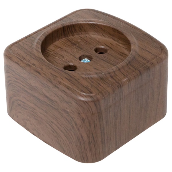 Электрическая внешняя под тёмное дерево розетка ЕКФ одинарная силовая 16А электросети 220В IP20 открытой установки на стену EGR10-022-40