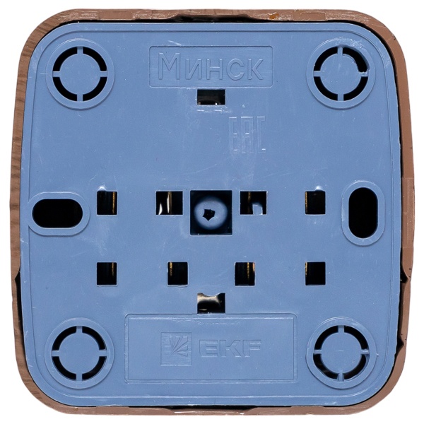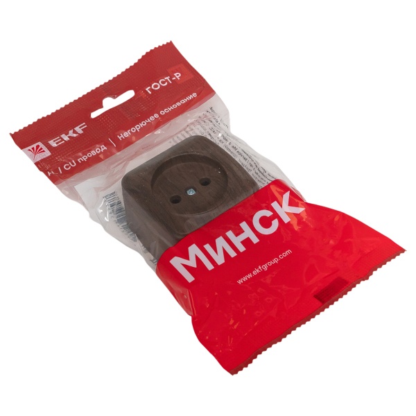 Розетка 1-м ОП Минск 10А IP20 без заземл. темн. дерево EKF EGR10-022-40