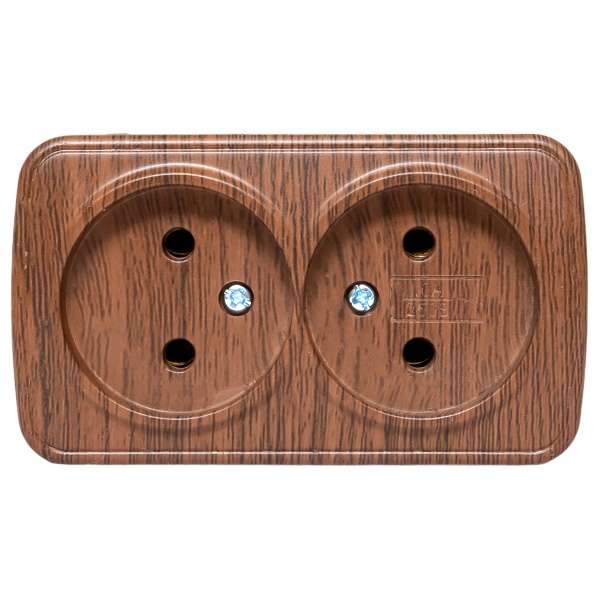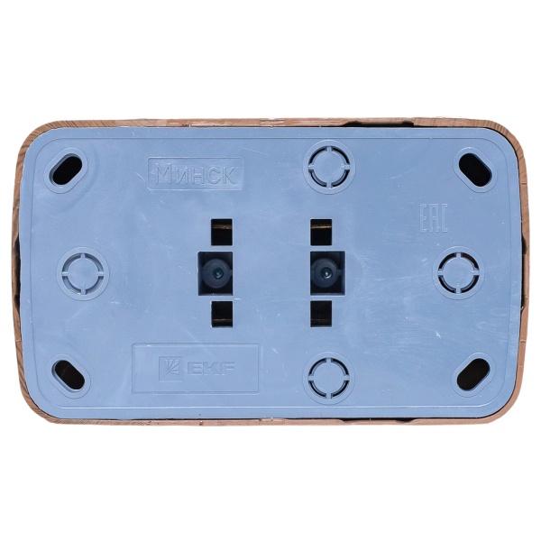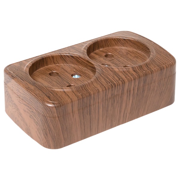 Электрическая внешняя под тёмное дерево розетка ЕКФ двойная силовая 16А электросети 220В IP20 открытой установки на стену EGR10-102-40