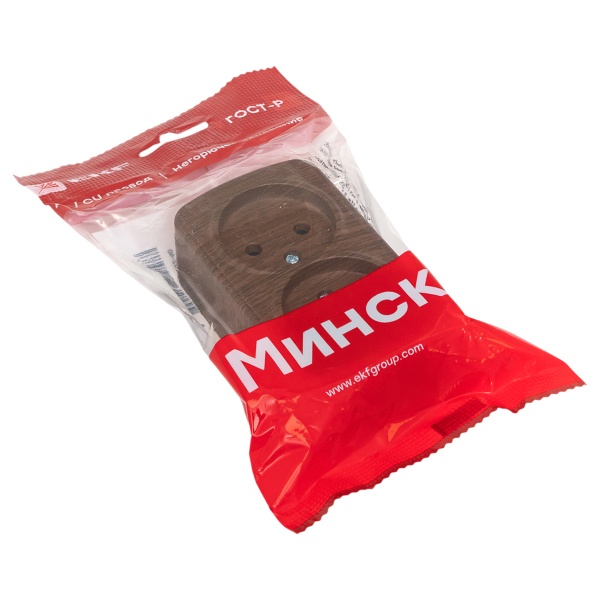 Розетка 2-м ОП Минск 10А IP20 без заземл. темн. дерево EKF EGR10-102-40