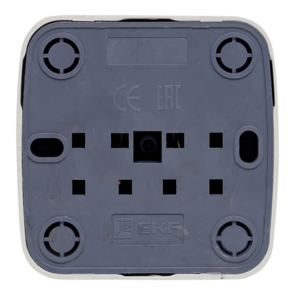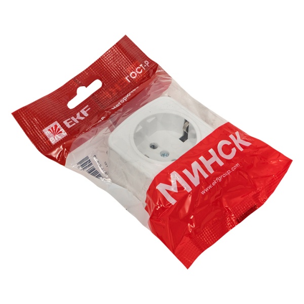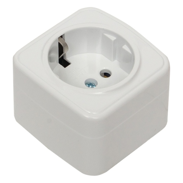 Электрическая внешняя белая розетка ЕКФ одинарная силовая 16А электросети 220В IP20 открытой установки на стену EGR16-028-10