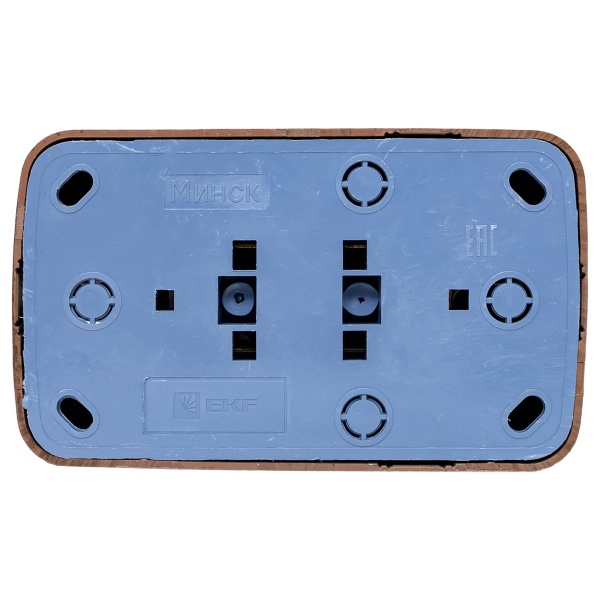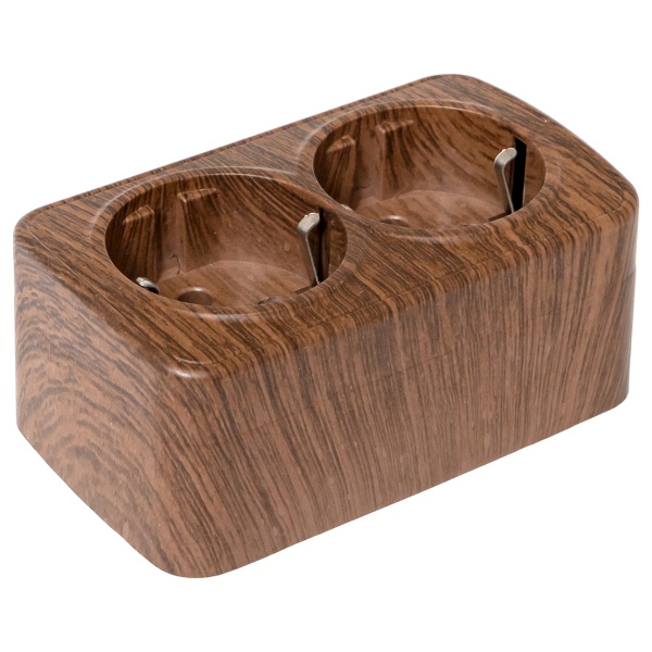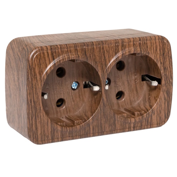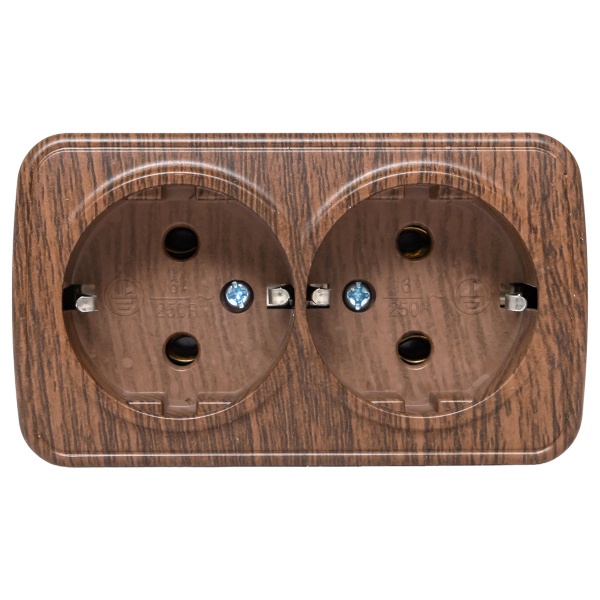 Электрическая внешняя под тёмное дерево розетка ЕКФ двойная силовая 16А электросети 220В IP20 открытой установки на стену EGR16-128-40