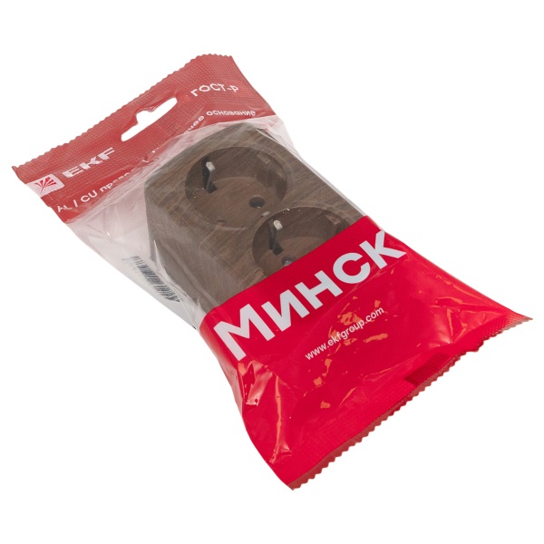 Розетка 2-м ОП Минск 16А IP20 с заземл. темн. дерево EKF EGR16-128-40