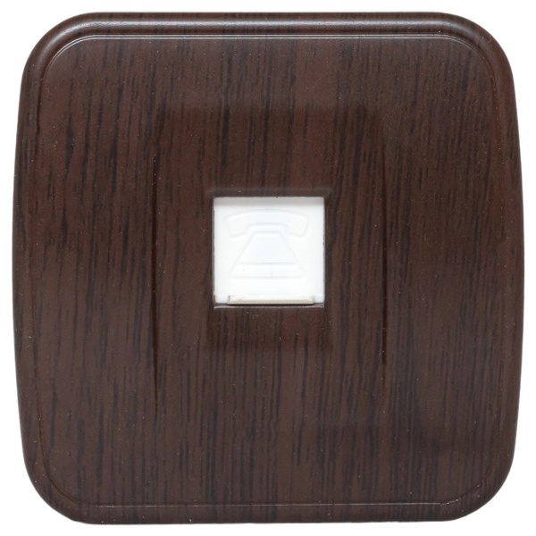 Внешняя под тёмное дерево одинарная розетка RJ-11 ЕКФ для телефонии открытой установки на стену EGT01-034-40