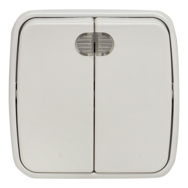 Настенный 2-клавишный электрический выключатель с индикацией белый ЕКФ IP20 открытой установки EGV10-123-10