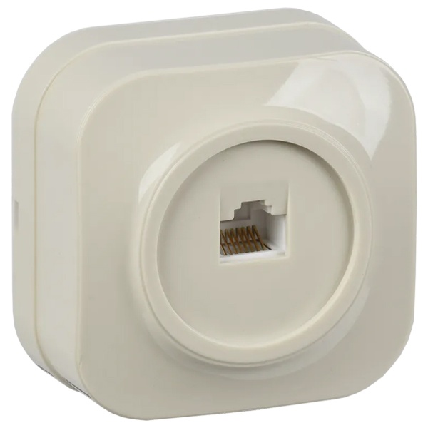 Одинарная телекоммуникационная розетка с разъемом RJ45, категории 5e, накладного монтажа Глори ИЭК кремового цвета EKH10-K33