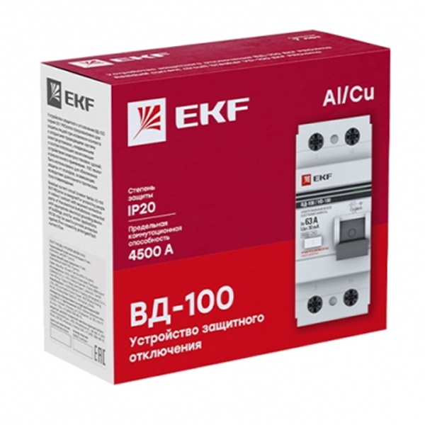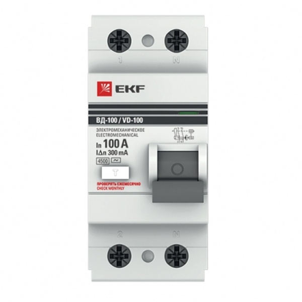 • УЗО EKF PROxima ВД-100 2P 100А/300мА (электромеханическое) АС (ВДТ)